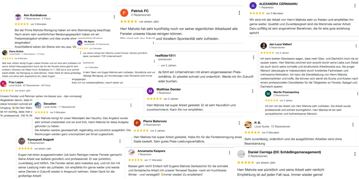 Nach dem Abschluss meiner Ausbildung entschied ich mich, noch ein Jahr Berufserfahrung zu sammeln, bevor ich mich vollständig auf die Gebäudereinigung spezialisiert habe. Von Anfang an war es mir wichtig, eine persönliche Beziehung zu meinen Kunden aufzubauen, damit ein vertrauensvolles Verhältnis entsteht.